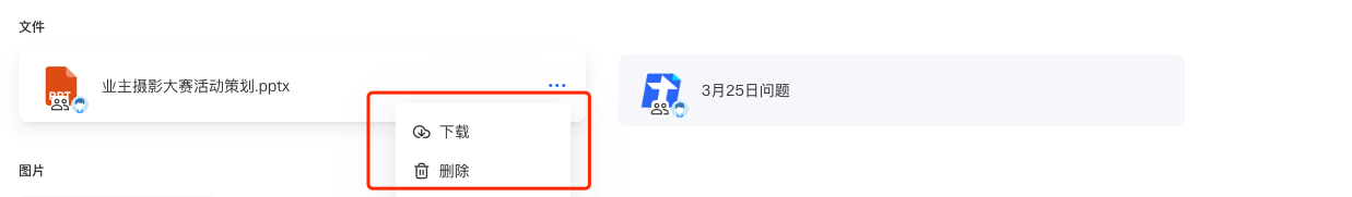设定协作权限为【可查看文件夹内容和数据、使用/复制/下载到成员对应内容库中】或【可查看和管理文件夹内容、查看数据、使用/复制/下载到成员内容库中】,参与协作人可下载该协作文件夹内海报作品和文件