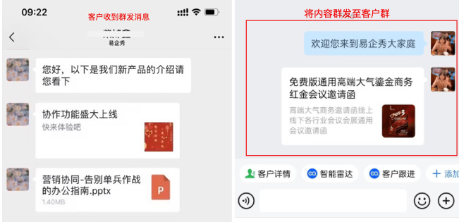 2、成员点击发送后,该成员的所有客户/客户群将会收到设置的群发内容,可与客户进一步进行沟通
