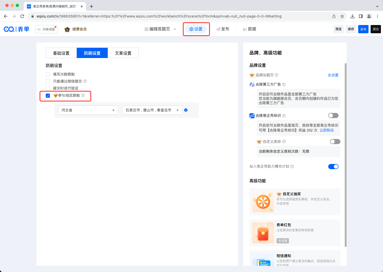 为了提升表单制作体验,参与地区限制权限有所调整。
