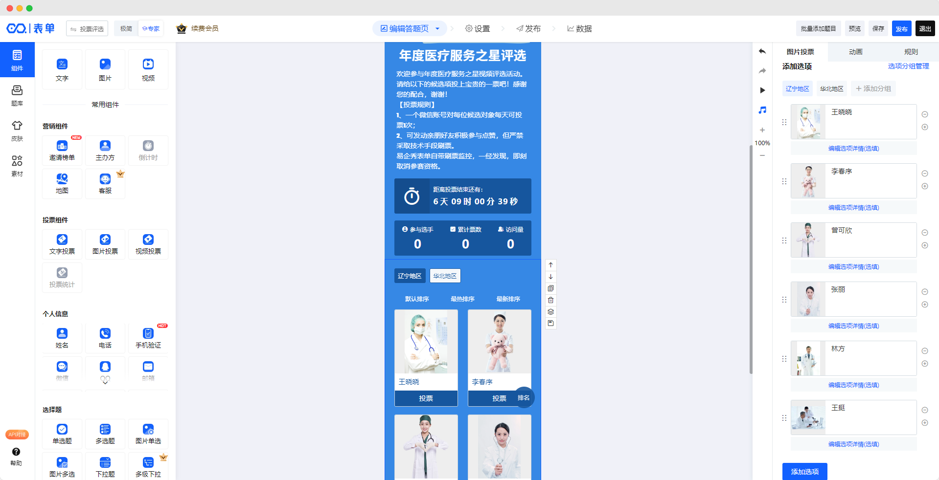 在表单编辑器中,还提供:分享增加投票次数功能、拉票榜单、拉票组件,有助于进一步刺激用户分享传播。