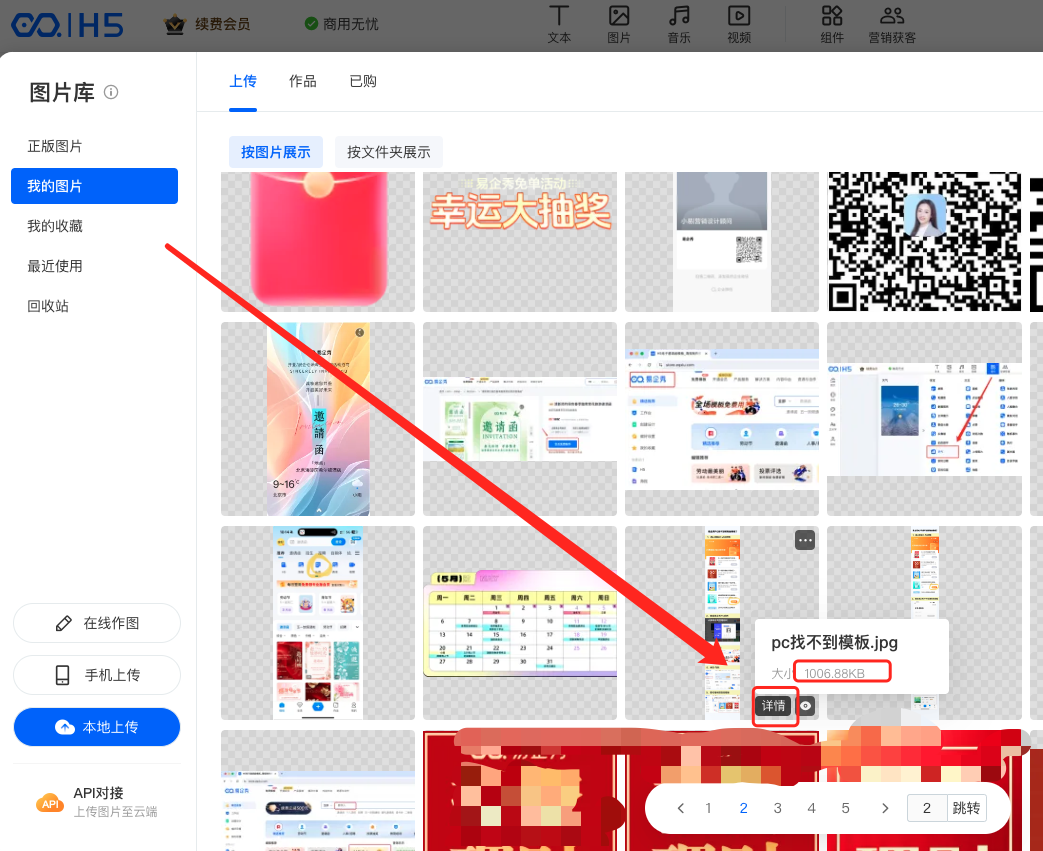 2、鼠标悬浮在详情上就可以看到图片的大小,对大图进行压缩再上传即可