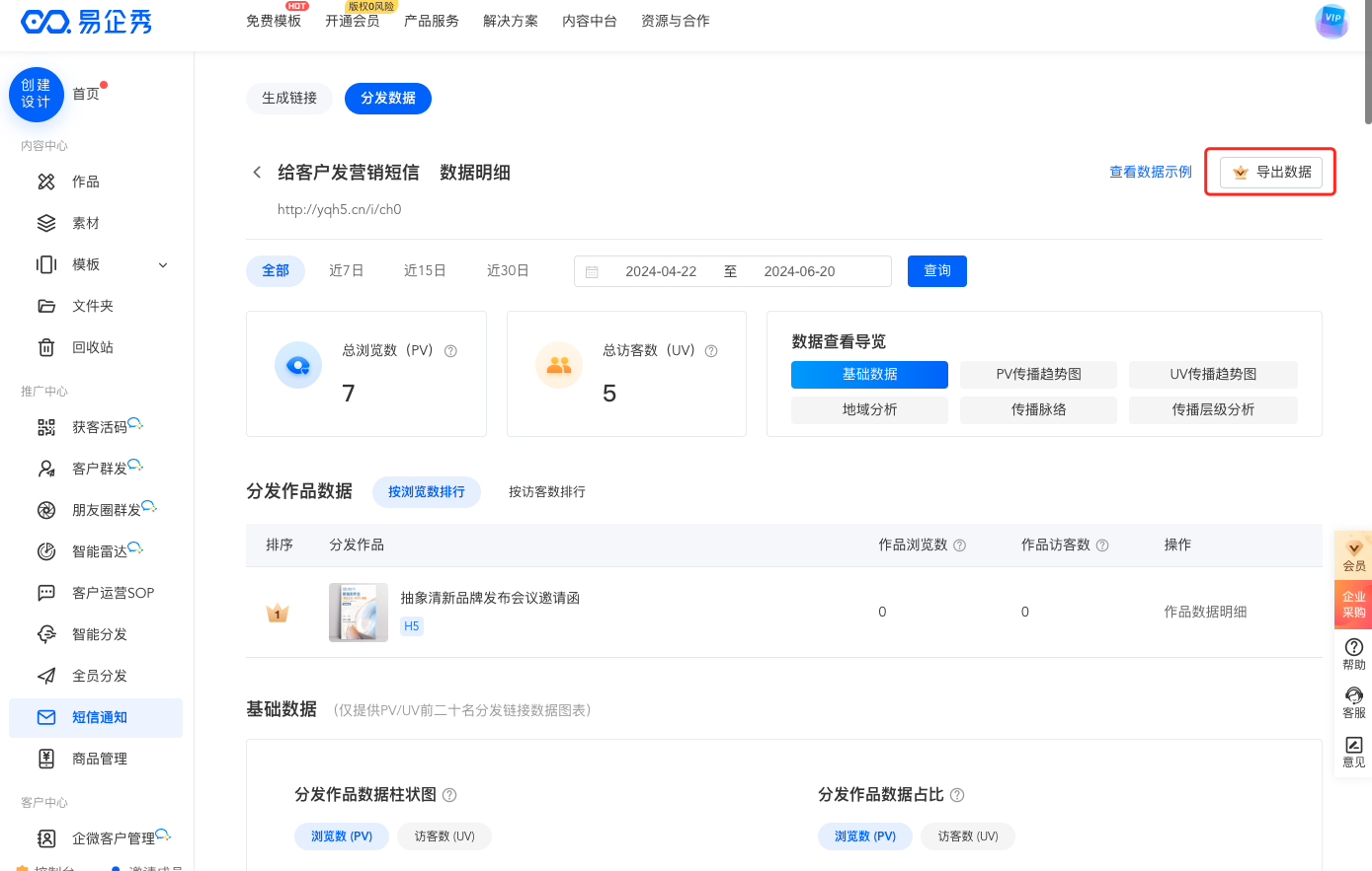 选择需要分发的作品,输入分发链接名称,根据自己的需要选择链接有效期,点击一键生成。