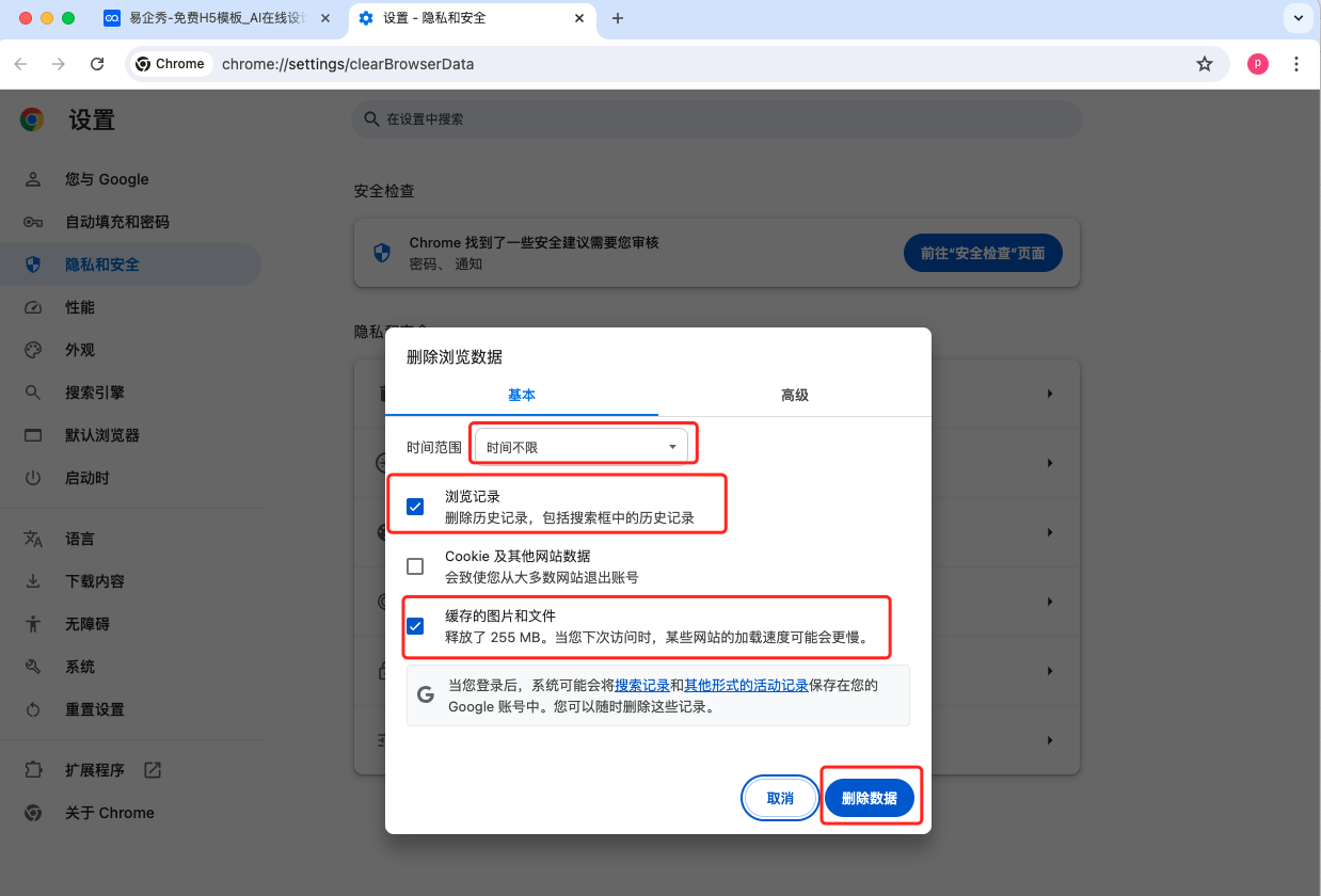 Chrome 谷歌浏览器:在Chrome浏览器中,点击右上角的菜单按钮(三个点),选择“更多工具” > “清除浏览数据”,选择要清除的数据类型并点击“清除数据”按钮。