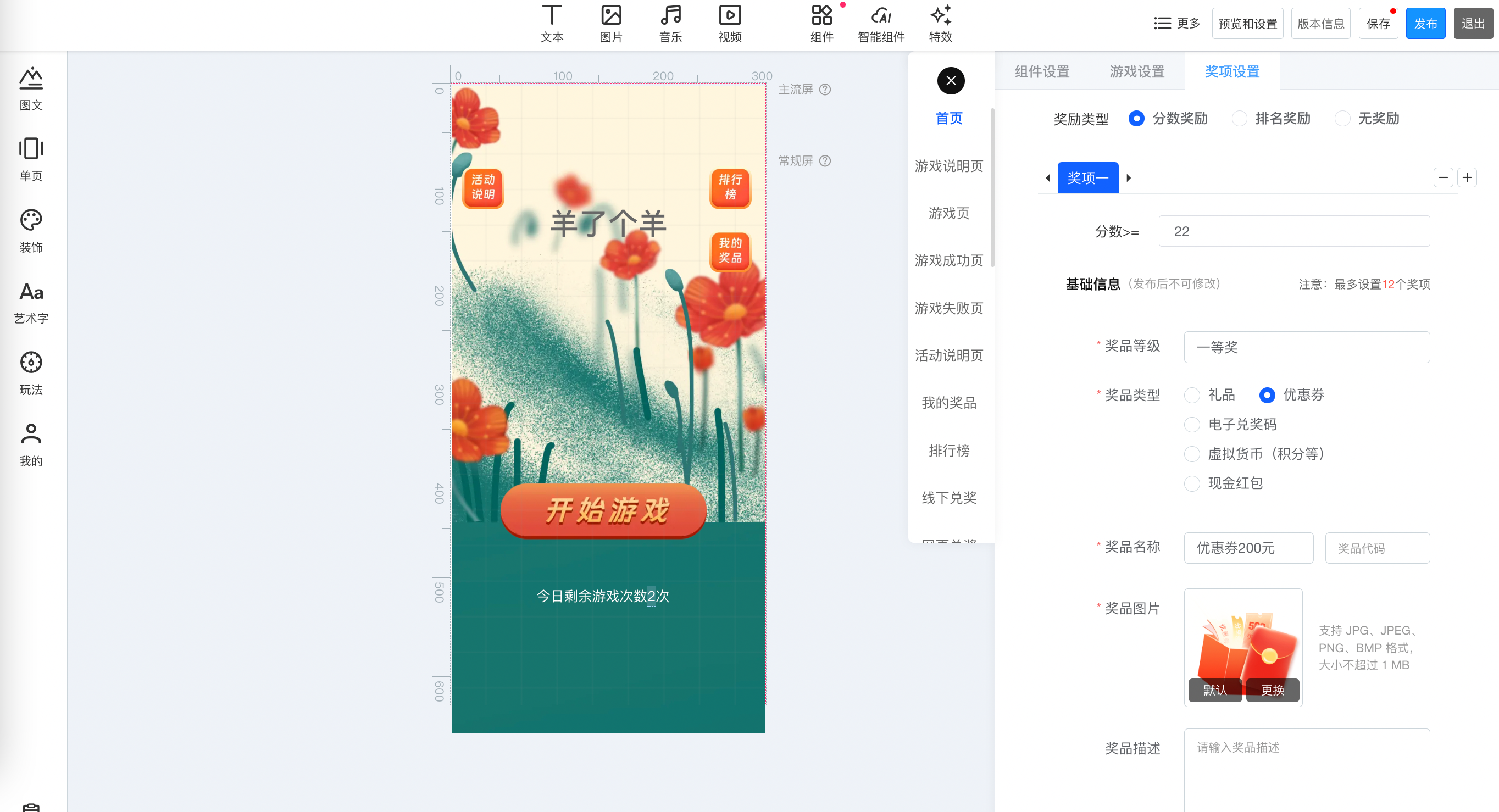 支持根据分数进行奖励、支持根据排名进行奖励,支持不同的奖品类型,更具吸引力;
