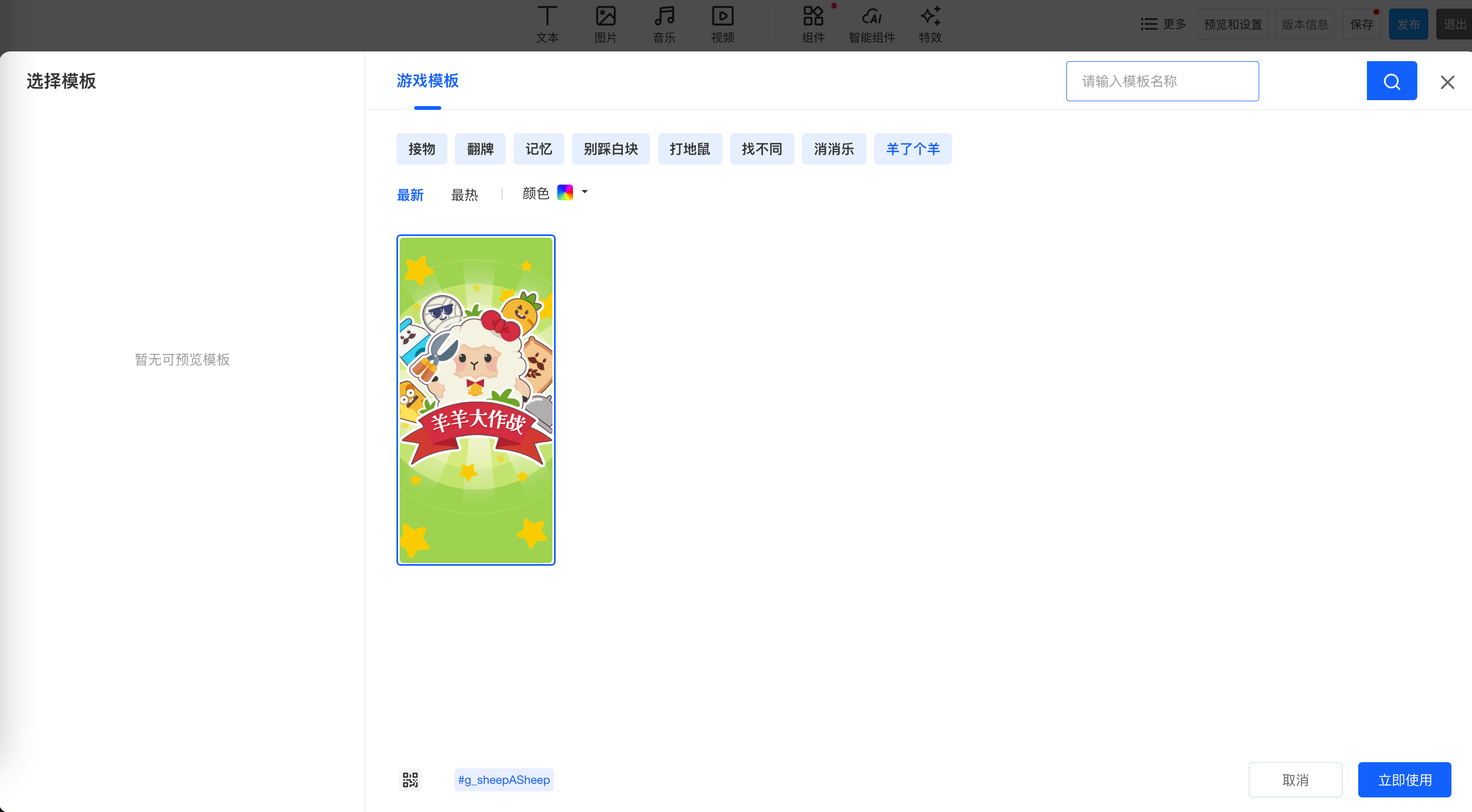 步骤①:平台模板找到“羊了个羊”(待补充)