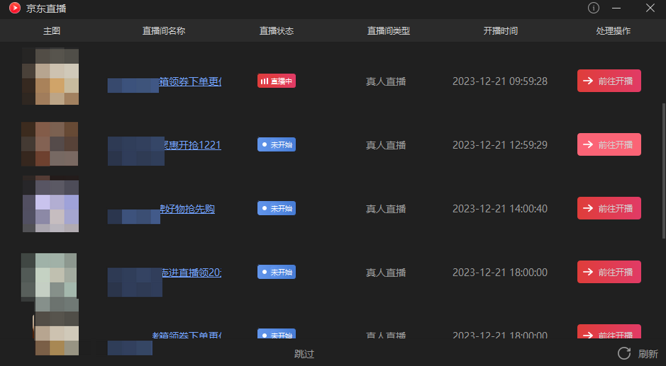 TIPS:京东直播间会将最近开播的直播间置顶,如需测试观看效果,尽量将直播间时间安排靠后。