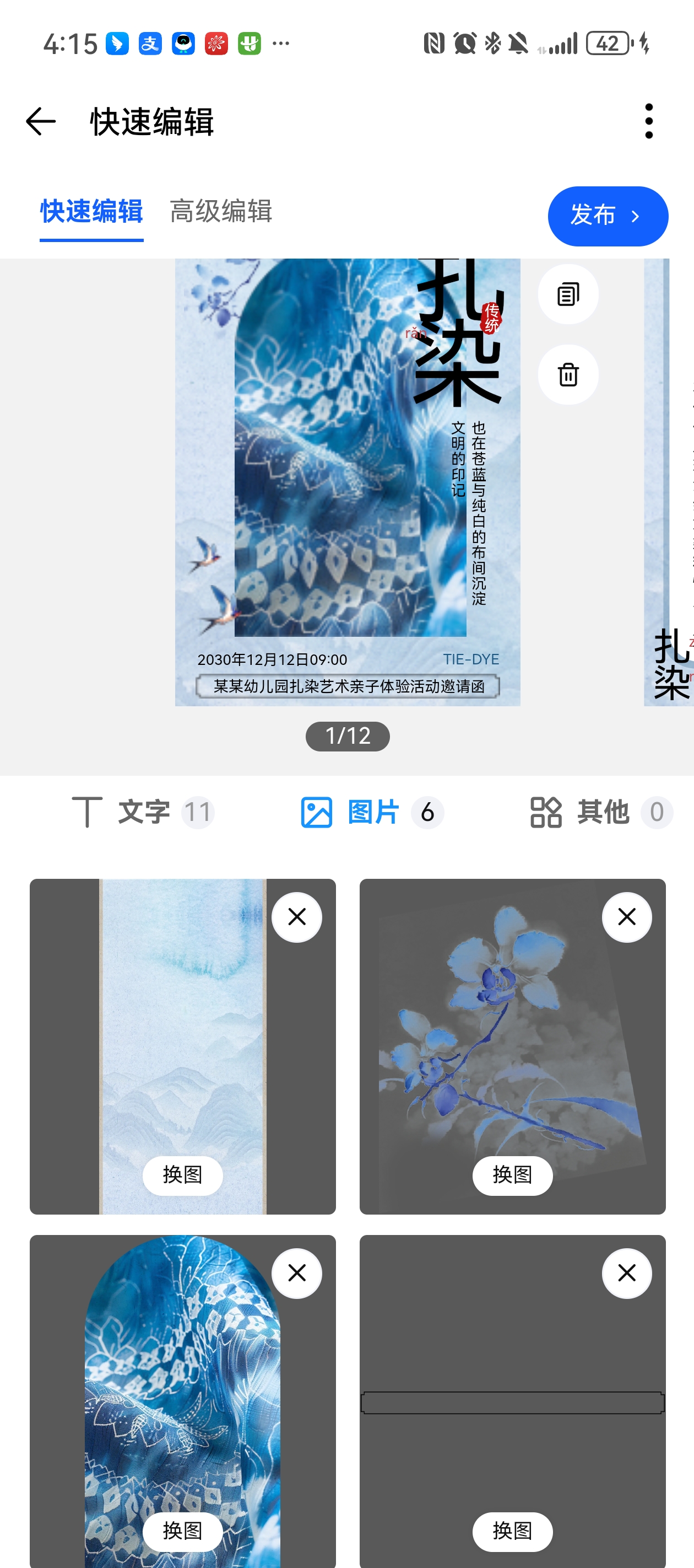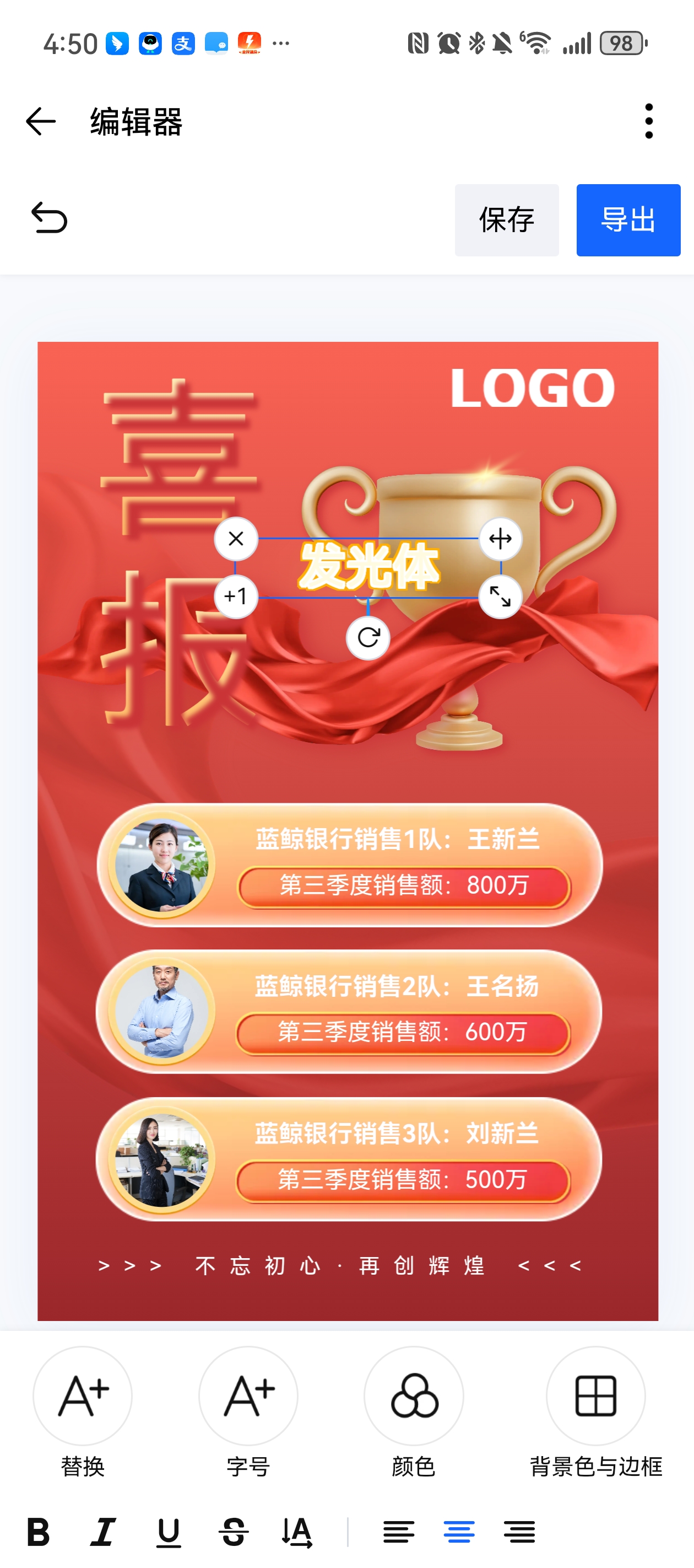 2.5、海报编辑器支持换文字、换图片,是指当前画布中所有的文字和图片会被显示出来,支持直接更换,如下图