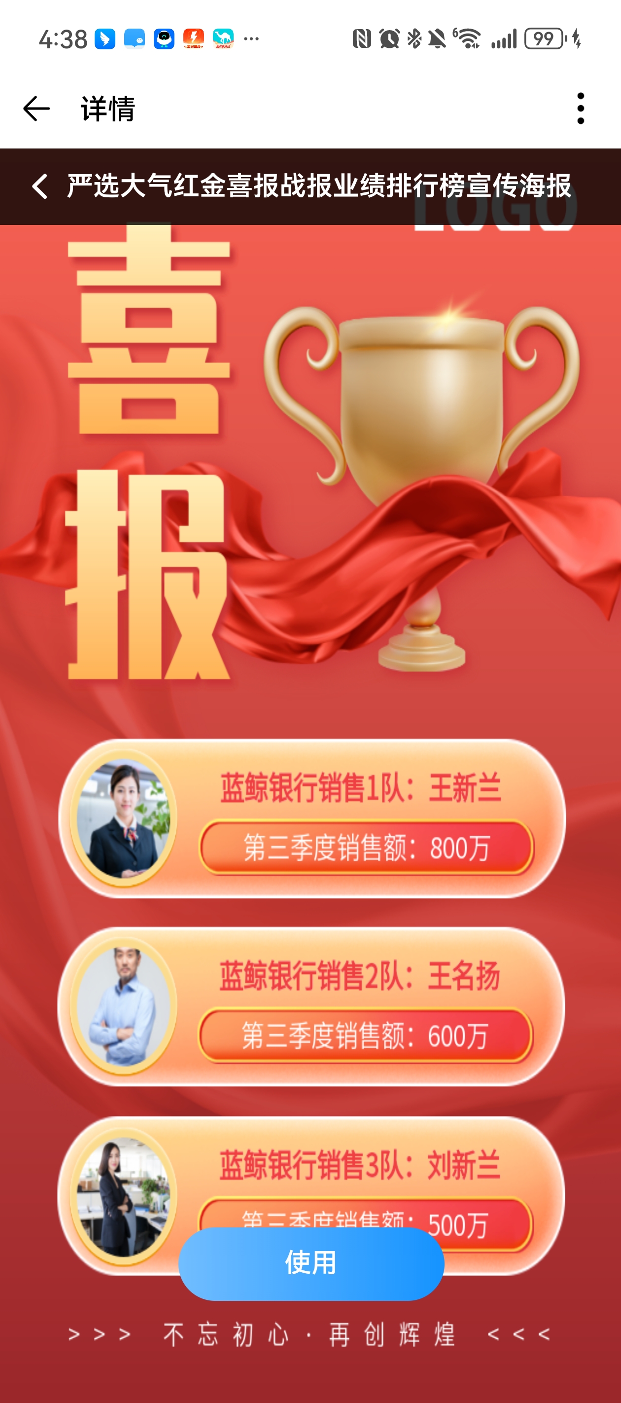 1、在平台模板/企业模板中找到目标模板,点击使用,进入海报编辑器