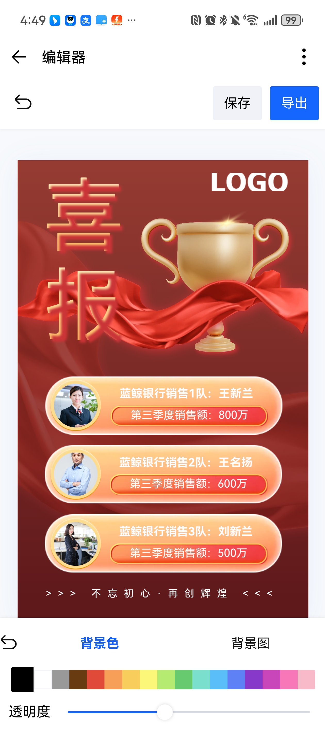 2.7、点击修改海报的背景,支持修改背景色,调节透明度,修改背景图
