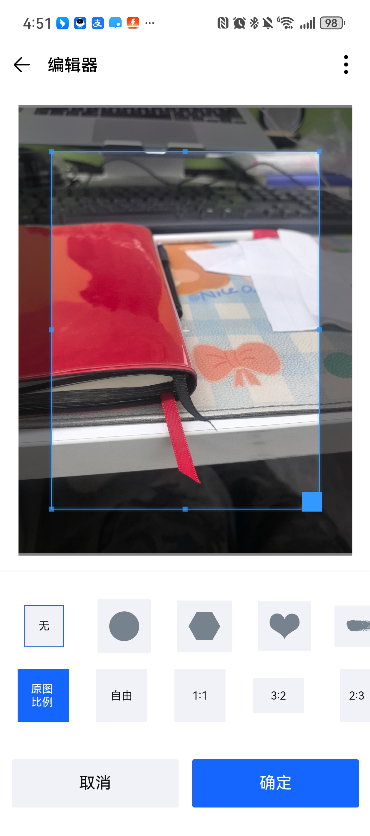 2.3、在海报编辑器中,点击添加图片,弹出选择上传方式,通过拍照或者选择图片库中的图片,选择之后,出现图片裁剪,支持形状裁剪和比例裁剪,点击确定,添加到画布中;支持拖拽图片的位置、拖动改变图片的大小尺寸;支持添加图片边框,修改图片边框的颜色;