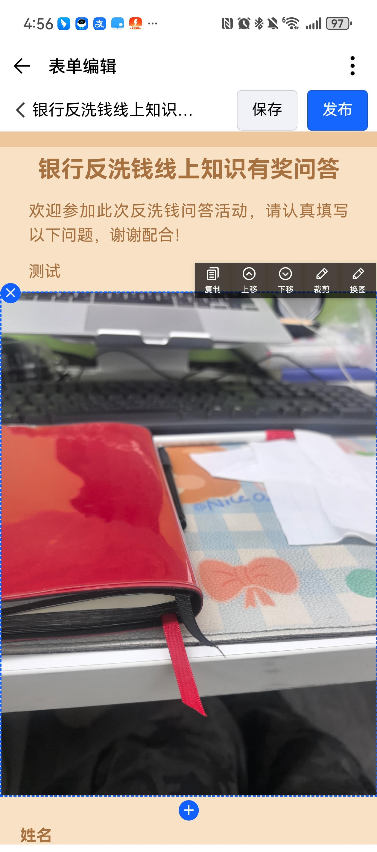 1、问卷类,点击使用进入编辑器,支持对海报中的文字、图片、组件进行编辑、复制、删除、移动位置;