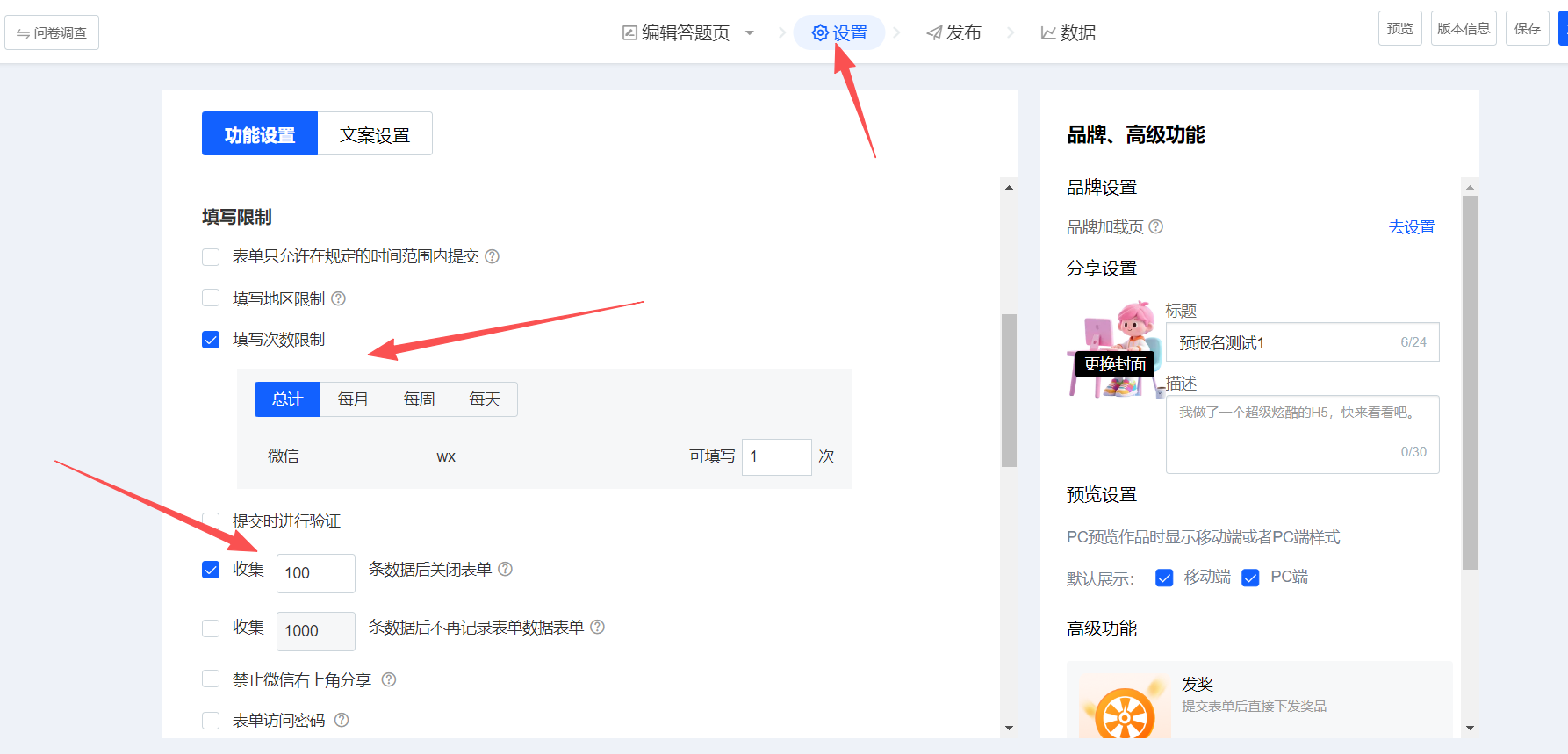 ## 一、创建需要的分类 在企业作品--新增分类,增加需要在活动列表中展示的分类,例如需要有最新和最热分类,如图所示:   ## 二、在表单编辑器创建好需要上架到活动列表的表单作品 1、创建一个表单作品 2、需要添加剩余名额组件,用于查看剩余人数  3、在设置需要选择填写多少关闭表单,这个数量就是本次表单报名的名额,另外建议填写次数限制为1次  4、表单设置添加时间限制,可以在个人中心区分该活动是否结束  ## 三、把创建好的表单作品,按照需求,把活动移动到对应的分类中  ## 四、创建活动列表 1、打开H5编辑器,选择活动列表组件  2、选择作品列表,数据填充方式和展示方式 默认即可  3、搜索条件勾选作品名称,分组按照自己需要的分组勾选,内容详情建议标题+封面+链接  ## 五、创建个人中心 1、打开H5编辑器,在之前的活动列表页上,新增一页,选择活动列表组件 2、选择个人中心接口  其他选择和活动列表勾选一样