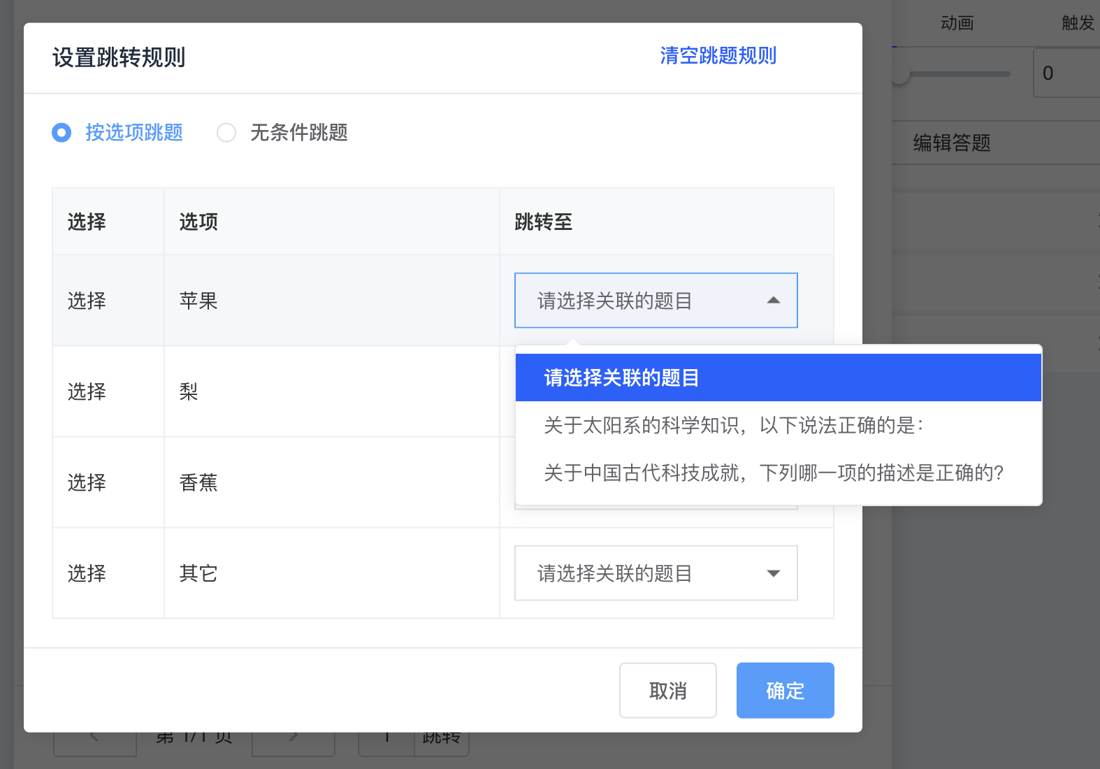 支持设置跳题规则