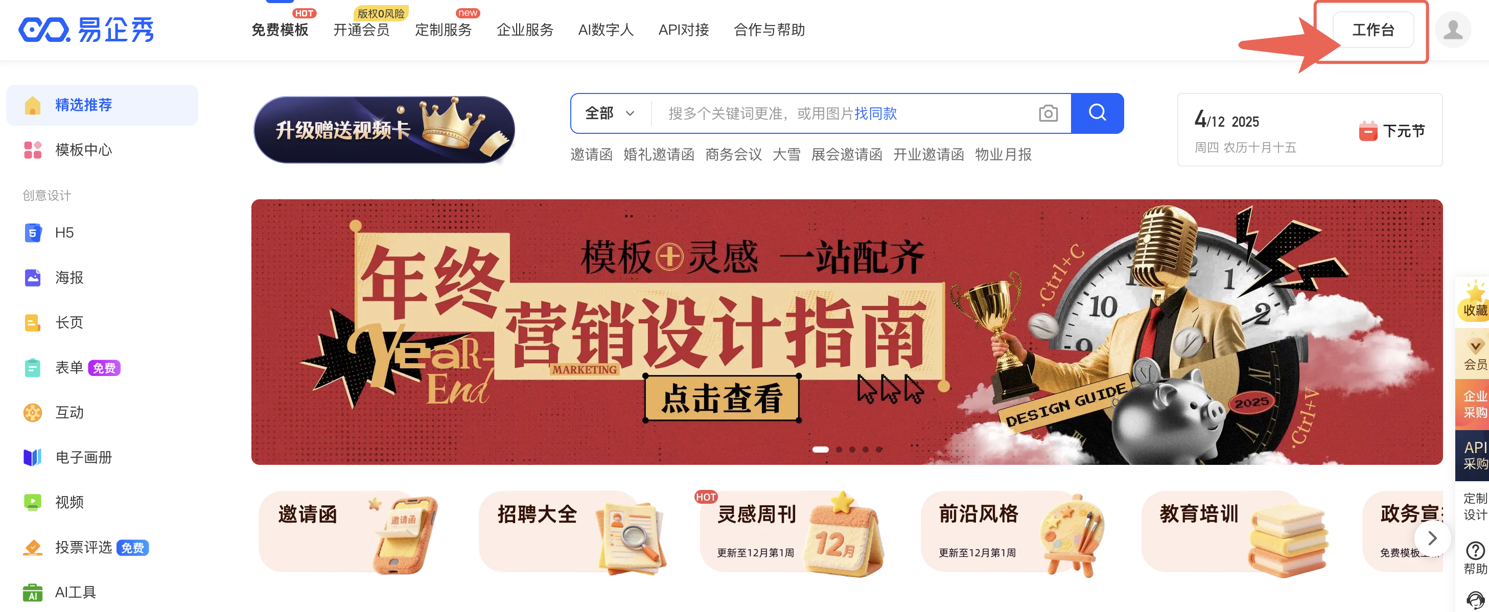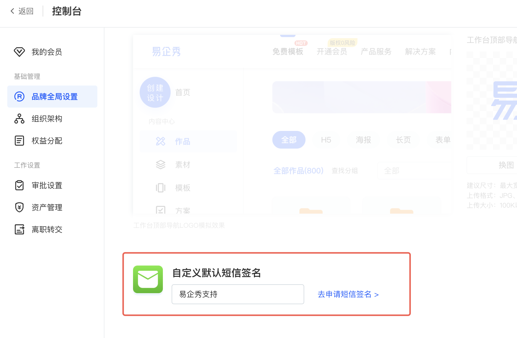 设置成功后,企业名下所有成员登录易企秀账号工作台后,左上角logo显示为企业自有品牌