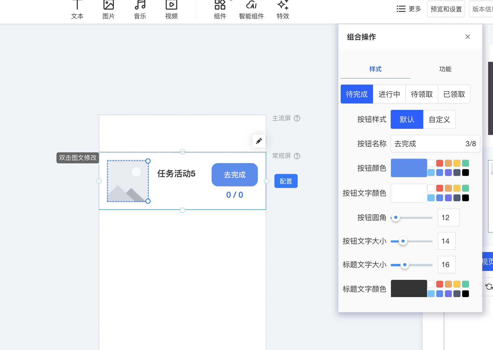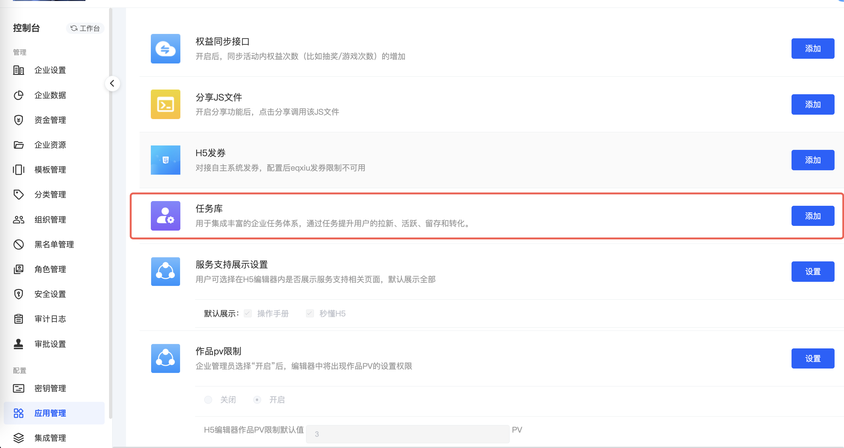 步骤①:控制台-应用管理-H5编辑器-任务库-配置任务