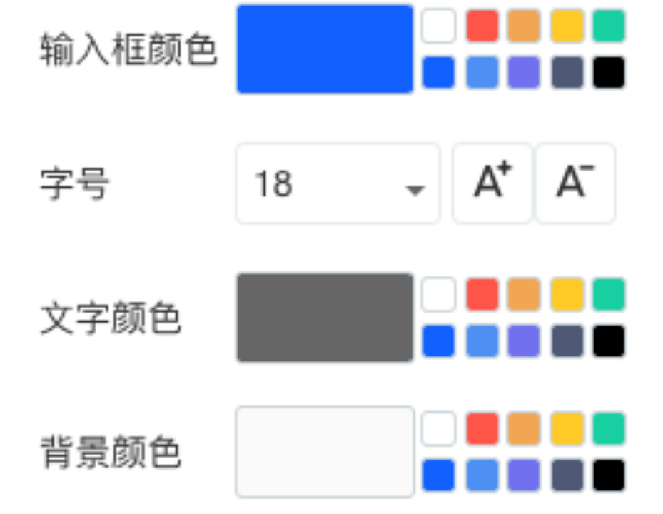 输入框组件下方支持编辑输入框内的文本以及文本颜色和背景颜色。同文本组件设置。