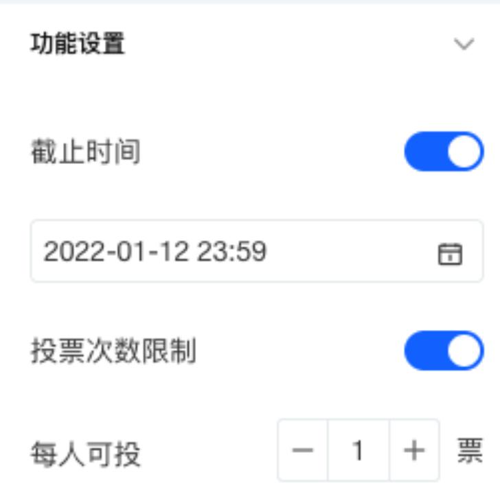 可以设置投票的功能。打开“截止时间”开关,下方出现时间选择框,可以选择投票的截止时间。