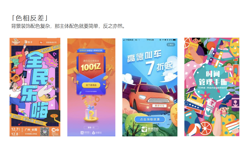 色彩搭配需具有美观性,衬托和突出主次,制造氛围情绪和风格。