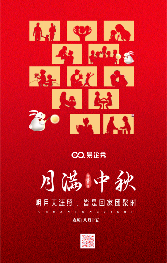 中秋节主题,除月亮、祥云等元素外,选用了不规则形状的河流元素,利用鎏金线条增加高级感,增加城楼、玉兔呼应中秋主题。