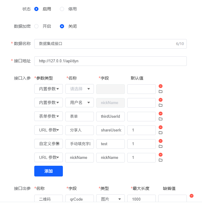 > 动态替换作品内容,可实现动态数据/内容填充,实现制作提效或访客千人千面的应用需求; 在动态替换作品内容时,要替换的数据来源支持两种:接口方式和Excel导入方式。 ## 接口方式 ### 制作流程 1. 开发接口,按照《查询动态数据》接口规范开发获取动态数据的接口。 2. 配置接口,在控制台-集成管理-数据集成中配置开发的接口。 3. 制作作品,创建作品,并配置动态替换的内容。 4. 访客打开作品,根据接口返回的内容动态展示作品内容。 #### 配置接口 在控制台-集成管理-数据集成中添加接口。  - 接口地址:第1步开发好的接口地址。 - 接口入参:在请求接口时携带的参数。 - 参数类型: (1)内置参数:接口默认携带,不用配置。 (2)URL参数:配置后若访问活动链接上有该字段则会携带。 (3)表单参数:配置后若作品有表单组件绑定有该字段则会携带。 (4)自定义。配置后接口默认携带该字段。 - 字段:请求接口时的字段名。 - 接口出参:接口返回的参数。 - 字段:响应的字段名,在配置作品时动态替换的名字,注意遵循一般代码的字段命名规则,不要添加一些特殊符号,如@、&等。 - 类型:字段的类型,包含文本、图片和图表,其中图表应用于图表组件。 #### 制作作品 ##### (1)创建作品 ##### (2)开启数据集成 进入H5编辑器-预览设置-动态渲染-选择“开启”。 ##### (3)配置字段 - 设置入参字段  - 设置显示文本字段  注意:如果接口字段返回数据为0或者空时,可以设置字段显示方式。  - 设置显示图表  - 设置组合组件  - 设置视频组件  - 设置轮播图组件  ### 接口规范 - 接口描述:查询动态数据 - 请求方式:POST - Content-Type:application/json - 接口入参(开启加密): | 参数名 | 是否必须 | 参数类型 | 参数说明 | | --- | --- | --- | --- | | timestamp | 必须 | String | 请求时的时间戳 | | nonce | 必须 | String | 随机字符串 | | signature | 必须 | String | 请求签名 | | msgEncrypt | 必须 | String | 加密后的消息,解密后的参数同不开启加密的参数 | - 接口入参(不开启加密) | 参数名 | 必须 | 参数类型 | 参数说明 | | --- | --- | --- | --- | | creationId | 是 | Long | 默认携带。作品id | | creationCode | 是 | String | 默认携带。作品code | | encodeId | 否 | String | 默认携带。 在内容中台测唯一身份标识| | channelKey | 否 | String | 默认携带。渠道编码,对应访客信息接口返回channelKey,若未返回则有一个默认值 | | headImgUrl | 否 | String | 默认携带。 访客头像| | nickName | 否 | String | 默认携带。访客昵称 | | unionId | 否 | String | 默认携带。unionId | | thirdAppId | 否 | String | 默认携带。微信授权的appId | | mobile | 否 | String | 默认携带。 手机号| | openId | 否 | String | 默认携带。微信openId,微信授权有效 | | thirdUserId | 否 | String | 默认携带。自定义授权的userId,自定义授权有效 | | ...... | 否 | String | 其他url、表单、自定义参数根据在数据集成的设置传递 | - 请求示例 ```json { "openId": "oYy90xOy-sGx2_kiOYb2E2KcOIvA", "thirdUserId": "d0c8e4a470aa482b9720075d0859cdc2" } ``` - 返回示例 ```json { "name":"XXX", "age":"A0001", "sex":"A0001", "chartXAxis": ['1月份', '2月份', '3月份', '4月份数据'], // 图表字段设置的“横轴数据”格式,即图表的维度字段。 "chartYAxisData1": ["110","80","80","80"], // 图表字段返回的“图例”格式,即图表的数值字段,其中1、2、3分别对应图例1、图例2、图例3... "chartYAxisData2": ["90","80","80","80"], "chartYAxisData3": ["50","50","50","50"], "groupField1": { // 组合组件出参字段配置方式一 "name": "name", "age": "age" }, "groupField2": { // 组合组件出参字段配置方式二,__EQX_DYN_TYPE和data是固定属性,生成循环组件 "__EQX_DYN_TYPE": "list", "data": [ { "name": "name", "age": "age" }, { "name": "name", "age": "age" } ] }, "video1": "http://test-asset.eqxiu.cn/transcode/fe275256ce5b4bf5bc73d04ad3cb531c.mp4", // 视频出参字段配置方式一,参数类型【String】:只会修改视频链接 "video2": { // 视频出参字段配置方式二,参数类型【Object】src和poster是固定属性,修改视频链接和视频封面,poster是封面字段 "src": "http://test-asset.eqxiu.cn/transcode/c4bc513fa0f349c594bd1d9d9f450a0a.mp4", "poster": "https://test-asset.eqxiu.cn/8834deeb66184a81bd5345c1c0062f3e/2d95a624cfc24aa9895ce8fcd7082eea.png?imageMogr2/format/webp/quality/80/thumbnail/204x" } } ``` - 稿件数据 以下数据格式为稿件任务获取稿件数据的数据规范。 -- 入参: | 参数名 | 是否必须 | 参数类型 | 参数说明 | | --- | --- | --- | --- | | pageNo | 必须 | Integer | 第几页 | | pageSize | 必须 | Integer | 每页多少条数据 | | ... | | | 其他自定义入参 | -- 出参: ```json { "total": 5, //总条数 "pageNo": 1, //当前第几页 "pageSize": 5, //每页多少条数据 "end": false "records": [ //数据 { "id": 14651993, //数据唯一标识,必须返回且字段名为id,其他字段可以自定义 "title": "新闻", "linkUrl": "https://www.eqxiu.cn/article/14651993", "imgUrl": "https://asset.eqxiu.cn/article/14651993.png", "taskCompleted": "已完成" }, { "id": 14651994, "title": "新闻", "linkUrl": "https://www.eqxiu.cn/article/14651994", "imgUrl": "https://asset.eqxiu.cn/article/14651994.png", "taskCompleted": "已完成" } ], } ``` - 错误返回示例 ```json { "EQS_REQ_CODE":-1 } ``` ## Excel导入方式 采用接口的方式需要开发接口。有时候有固定的数据,希望直接在这些数据里动态替换数据,而不想开发接口。就可以采取Excel导入的方式。 ### 导入数据 设置字段。在资源-我的数据-新建  导入数据。设置好字段后点击保存-下载Excel示例模
